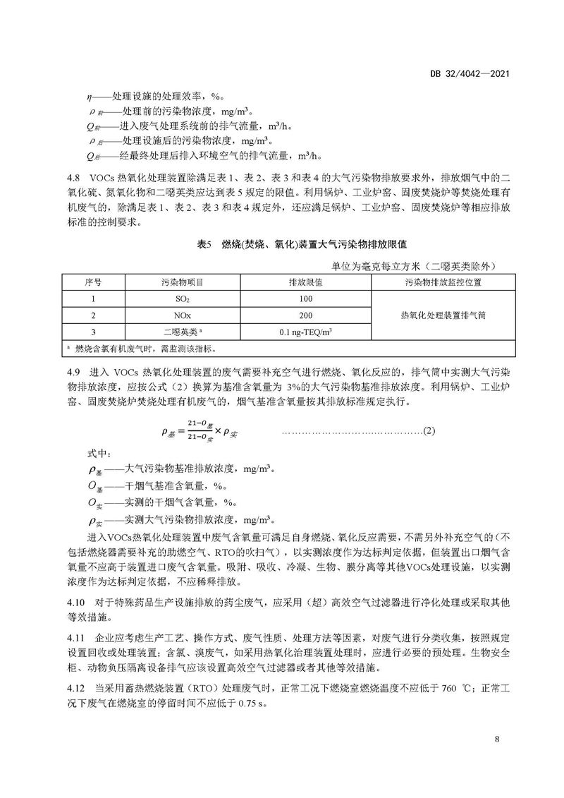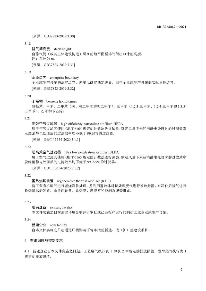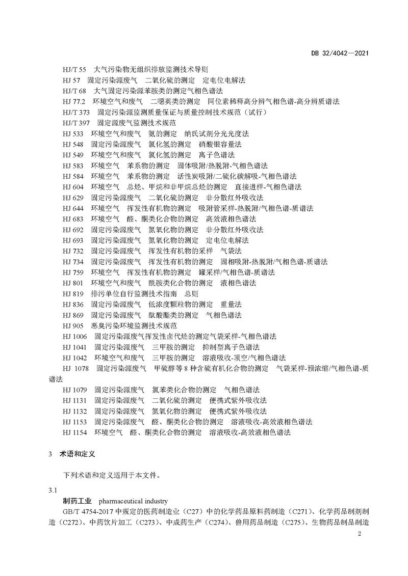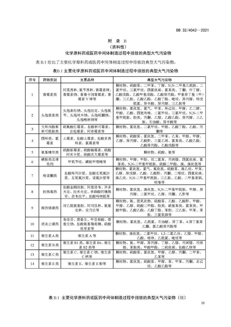 江蘇省地方標(biāo)準(zhǔn)《制藥工業(yè)大氣污染物排放標(biāo)準(zhǔn)》DB 32/4042—2021