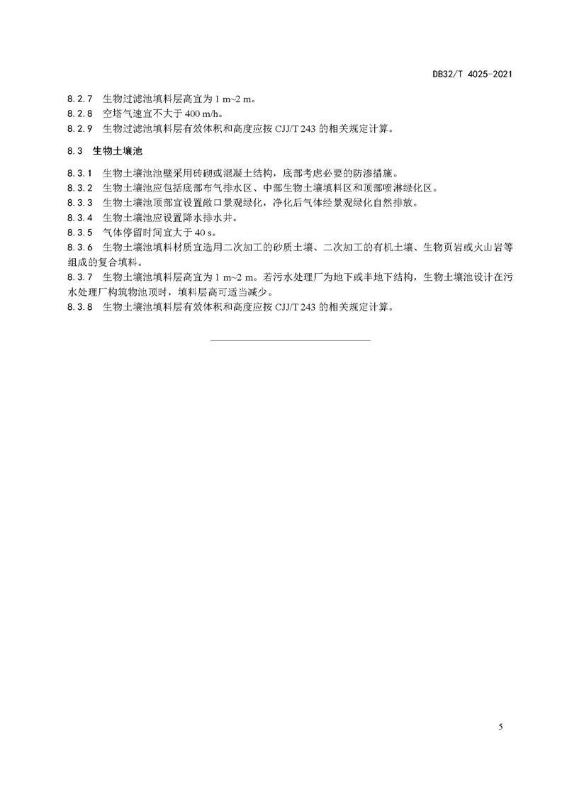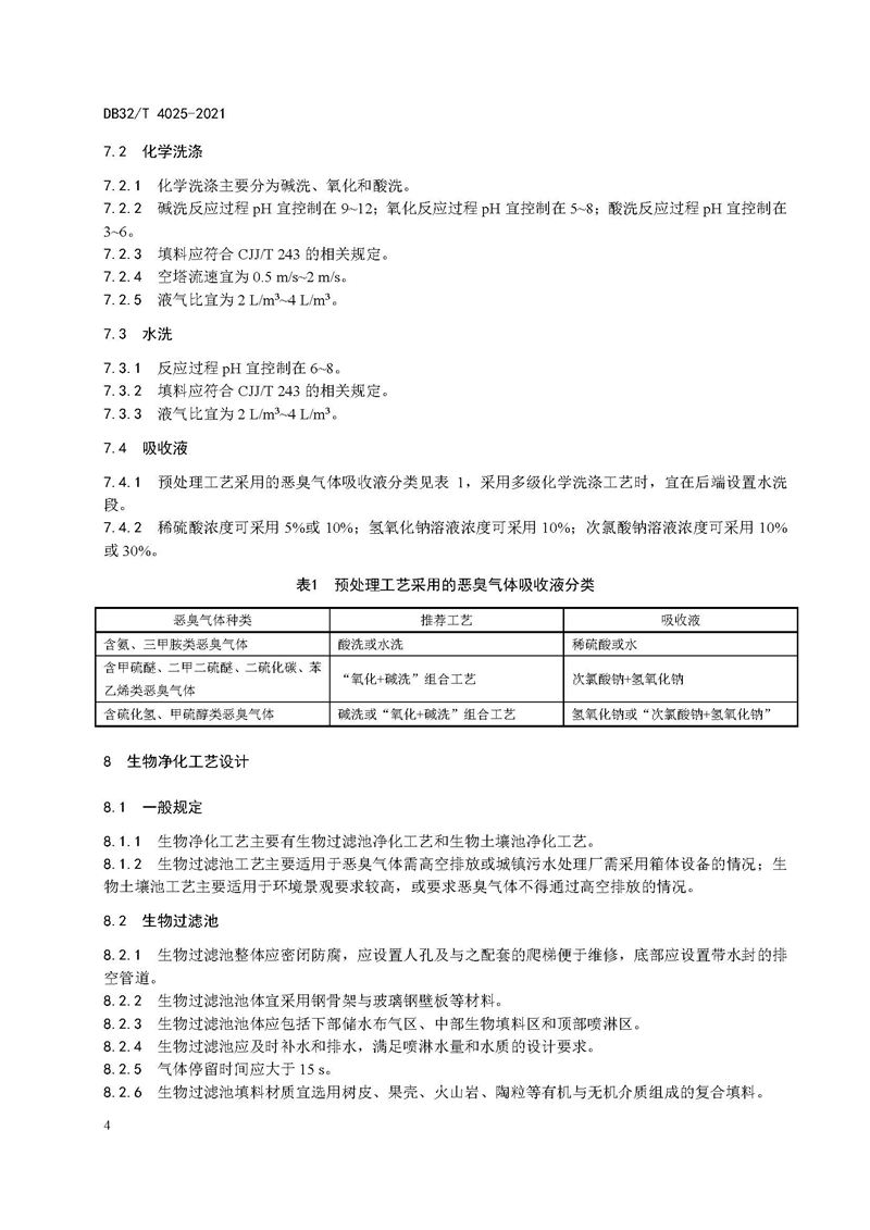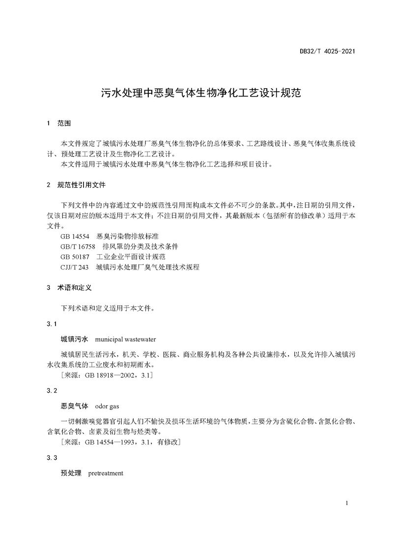 江蘇省地方標準《污水處理中惡臭氣體生物凈化工藝設(shè)計規(guī)范》DB32/T 4025-2021