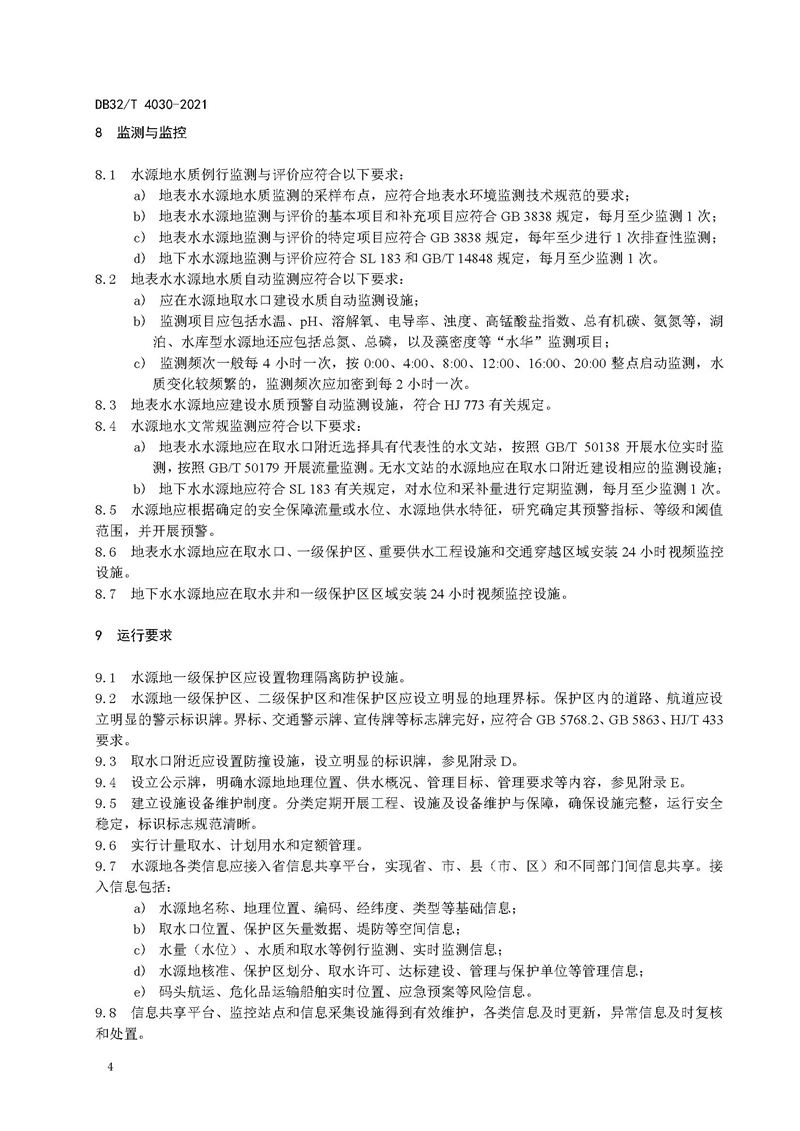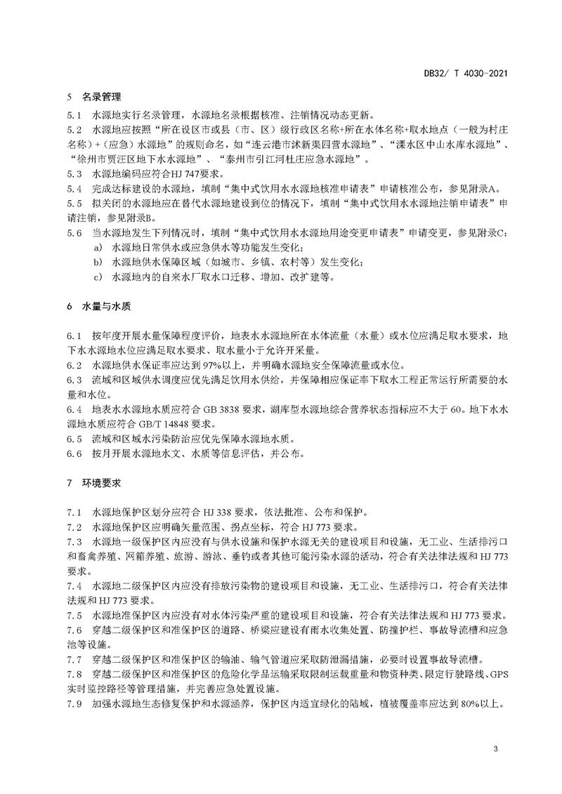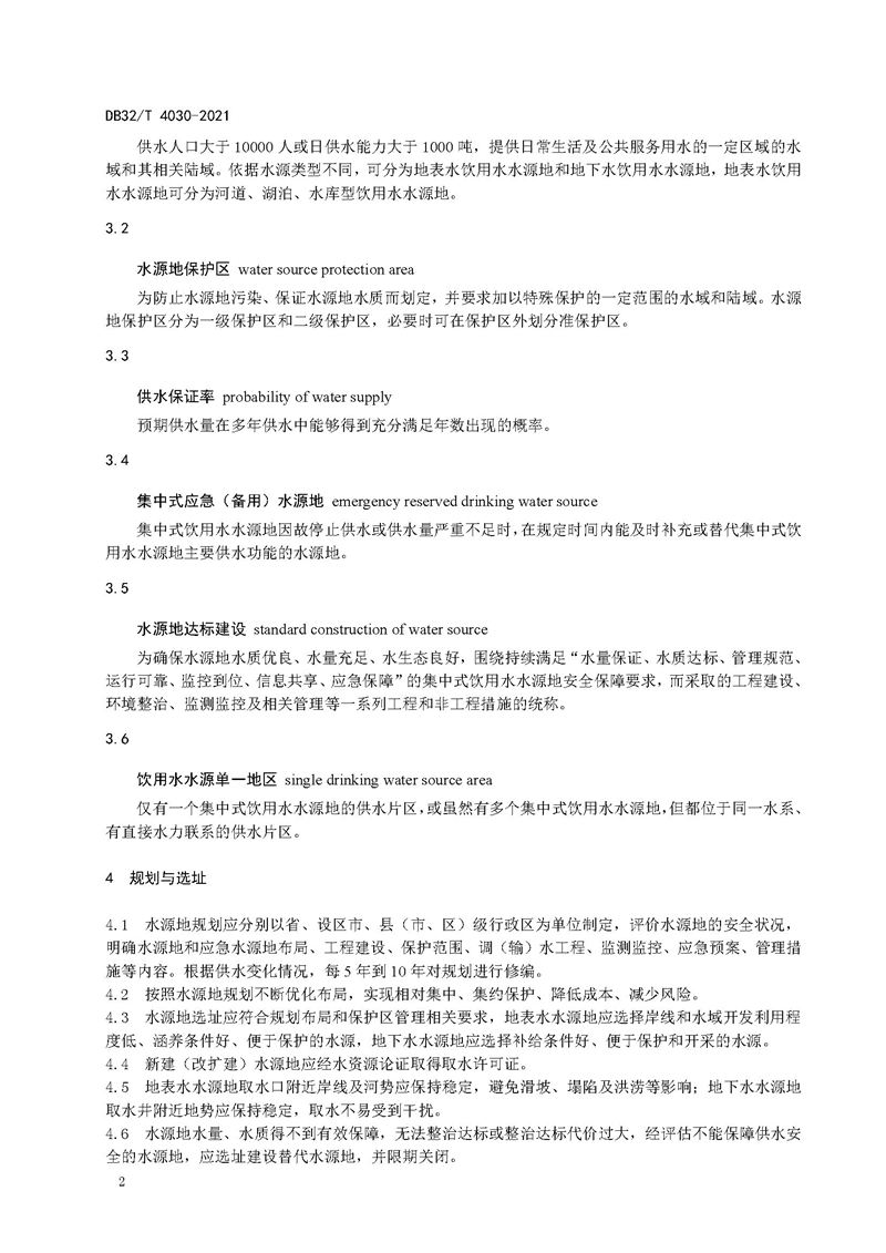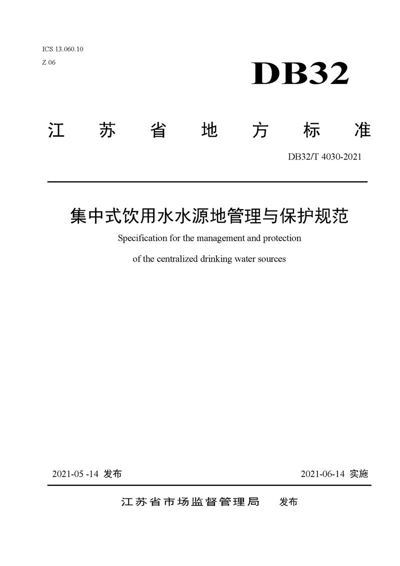 江蘇省地方標(biāo)準(zhǔn)《集中式飲用水水源地管理與保護規(guī)范》DB32/T 4030-2021