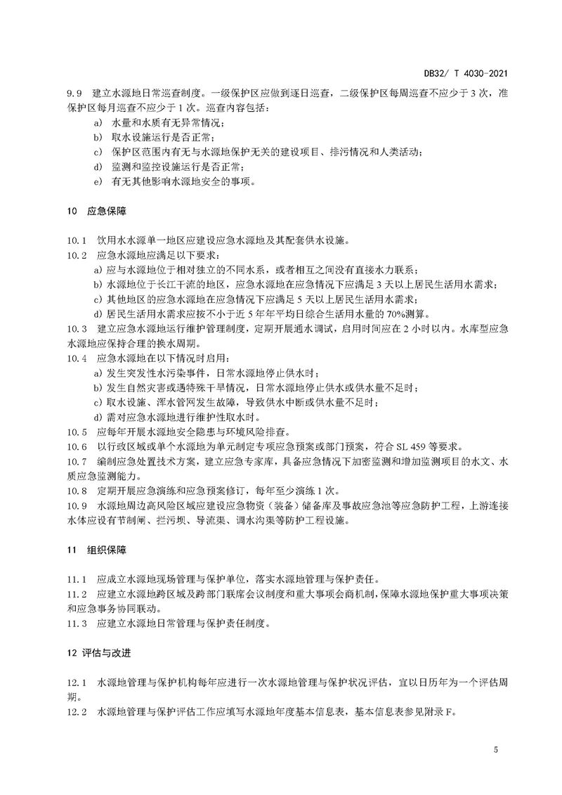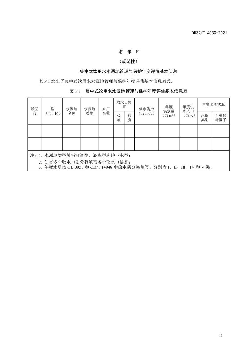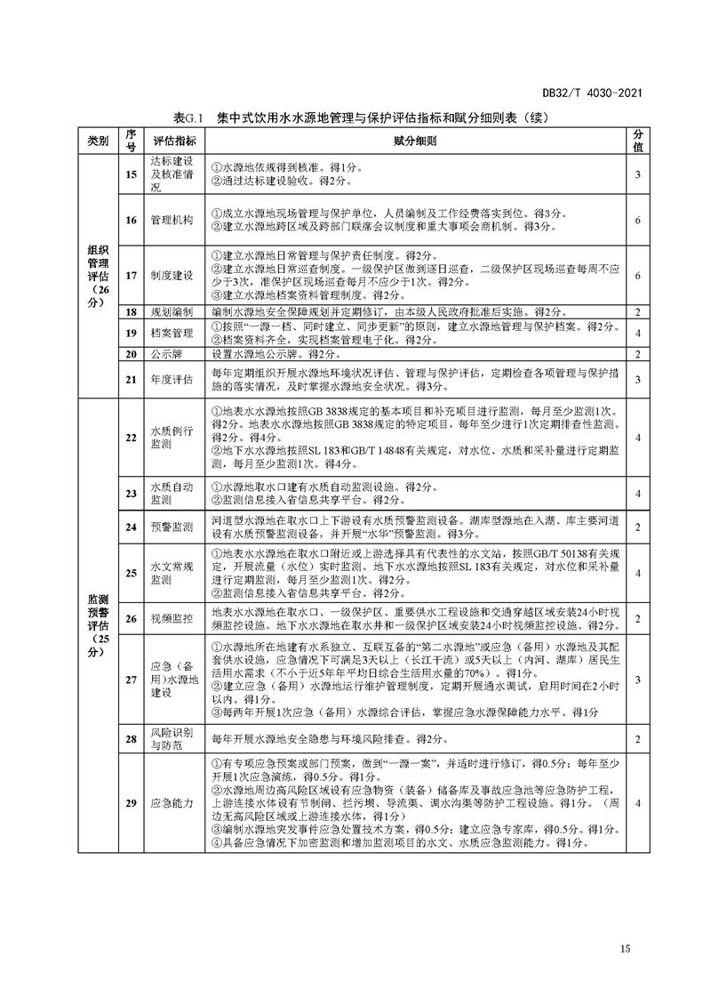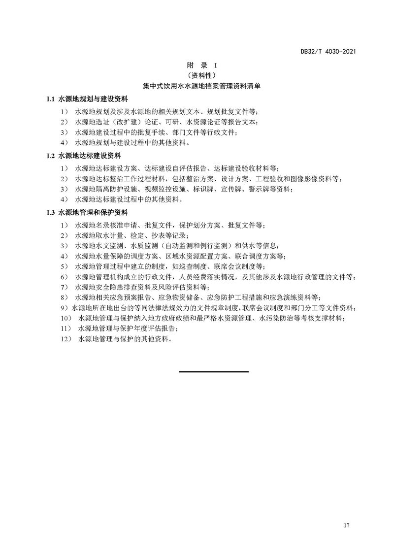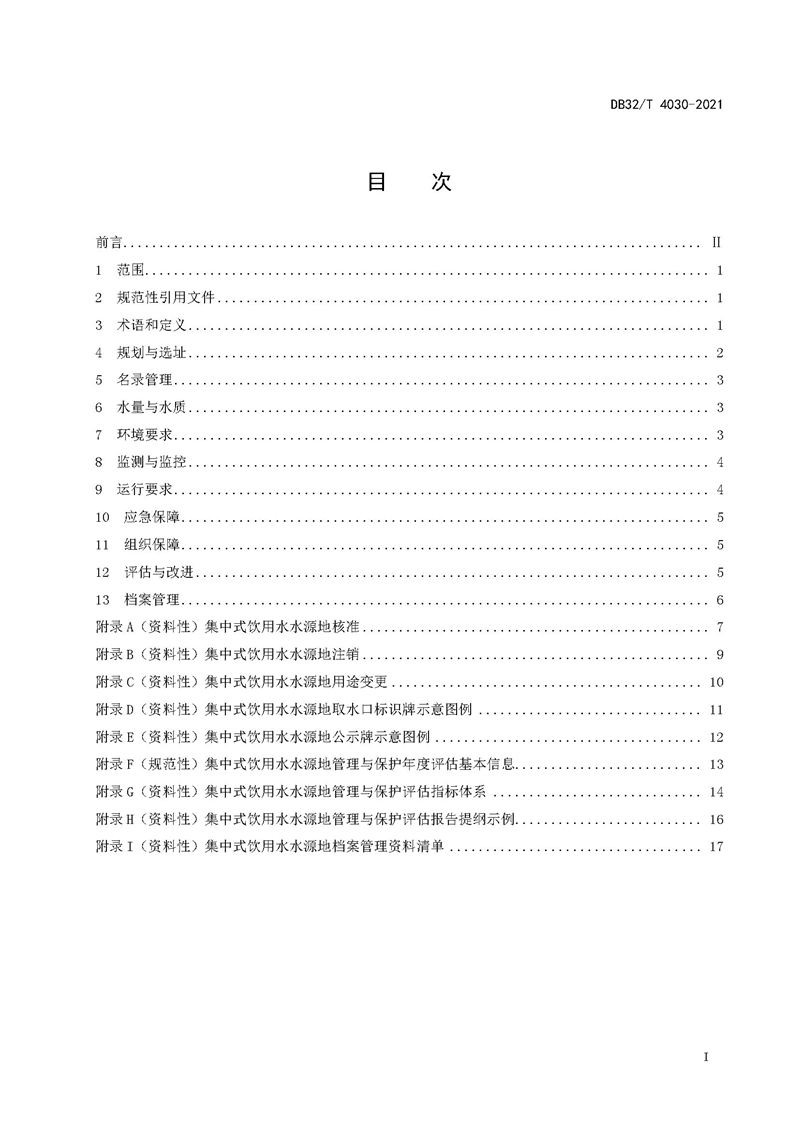 江蘇省地方標(biāo)準(zhǔn)《集中式飲用水水源地管理與保護規(guī)范》DB32/T 4030-2021