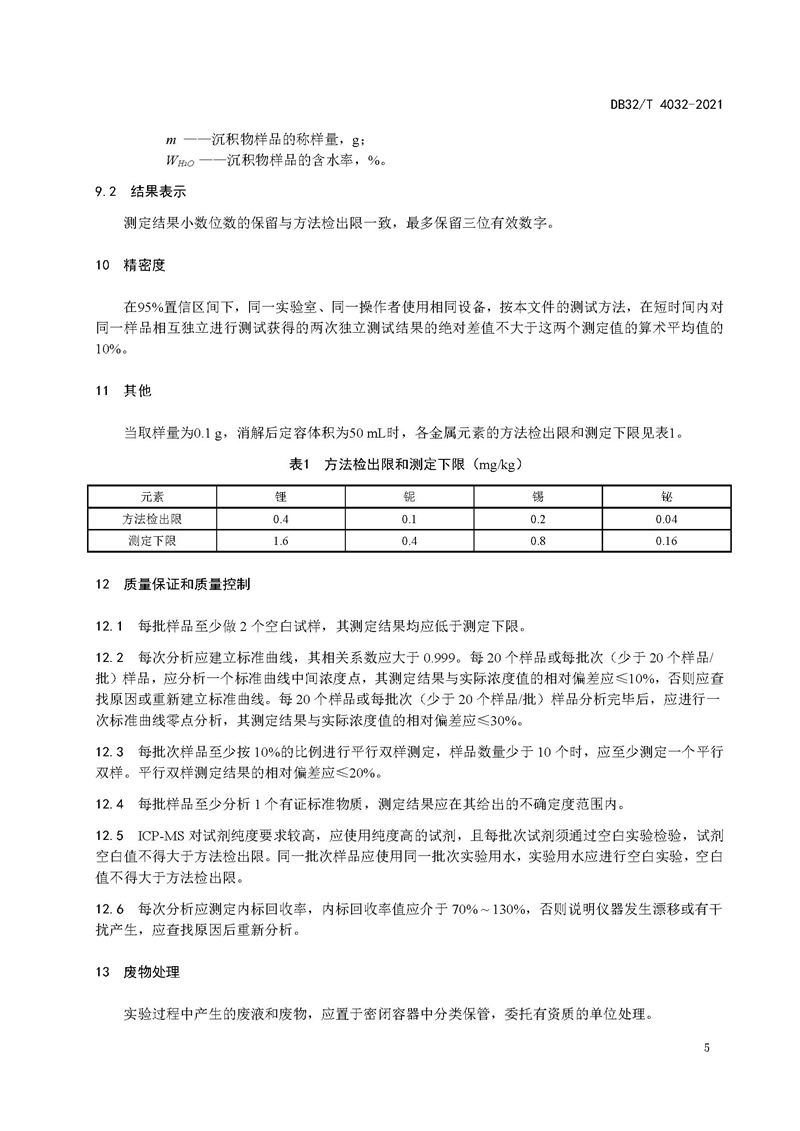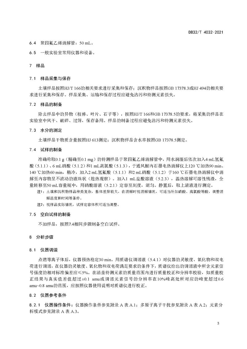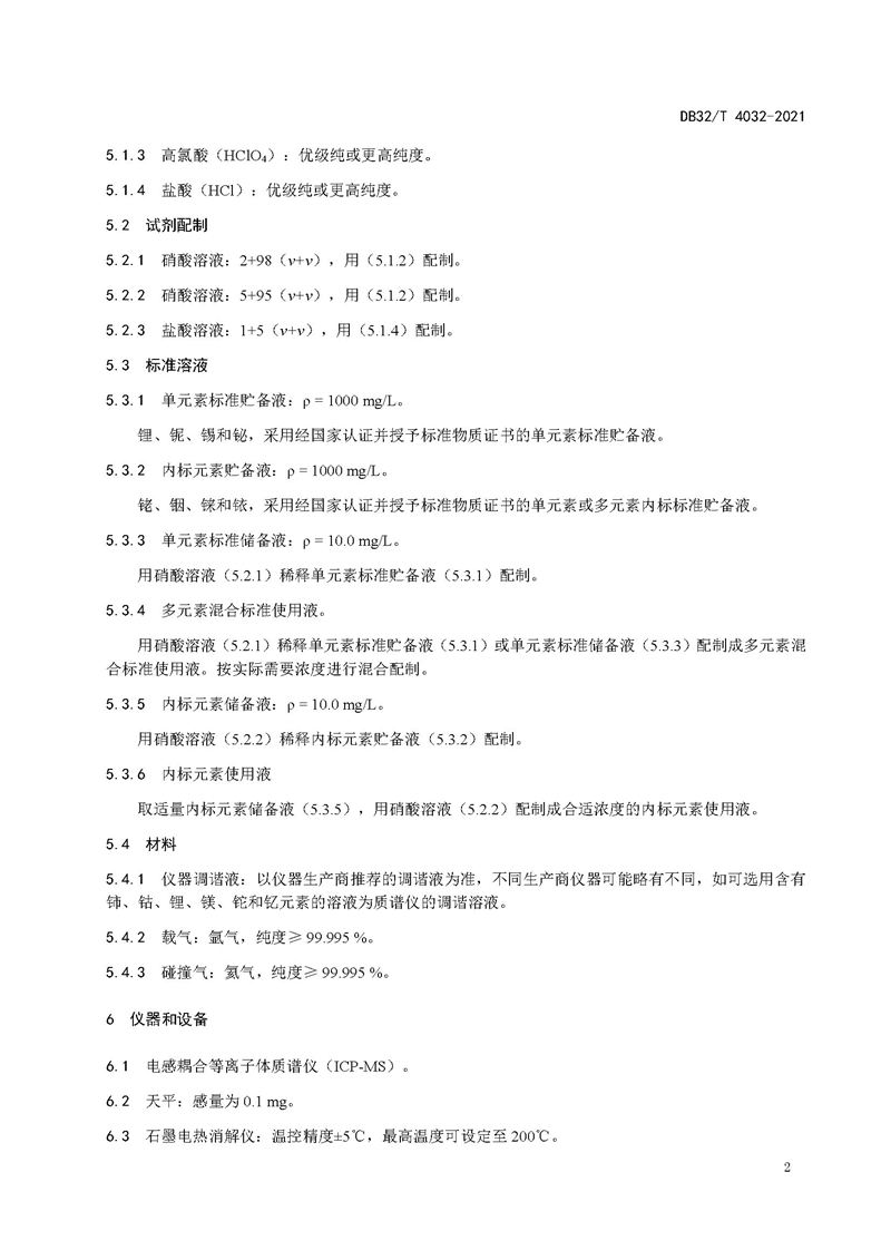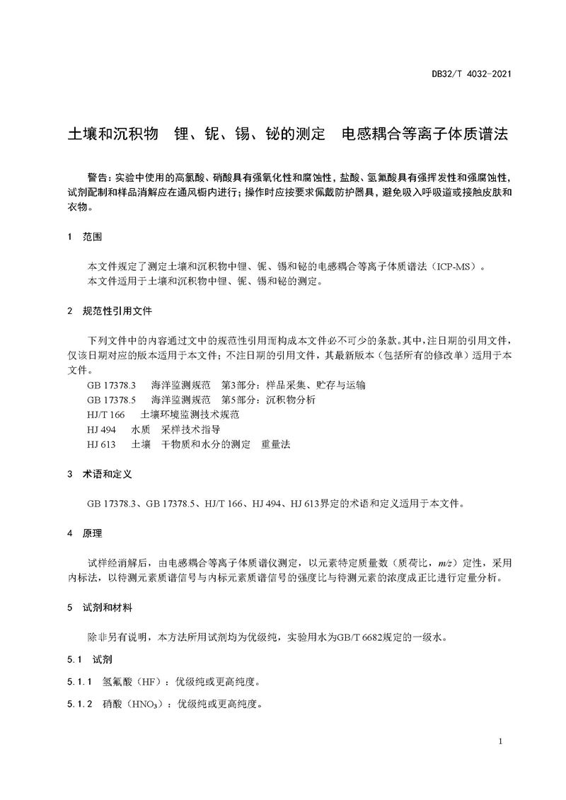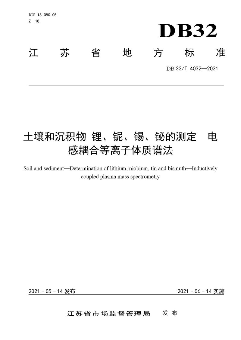 江蘇省地方標(biāo)準(zhǔn)《土壤和沉積物 鋰、鈮、錫、鉍的測(cè)定 電感耦合等離子體質(zhì)譜法》DB 32/T 4032—2021