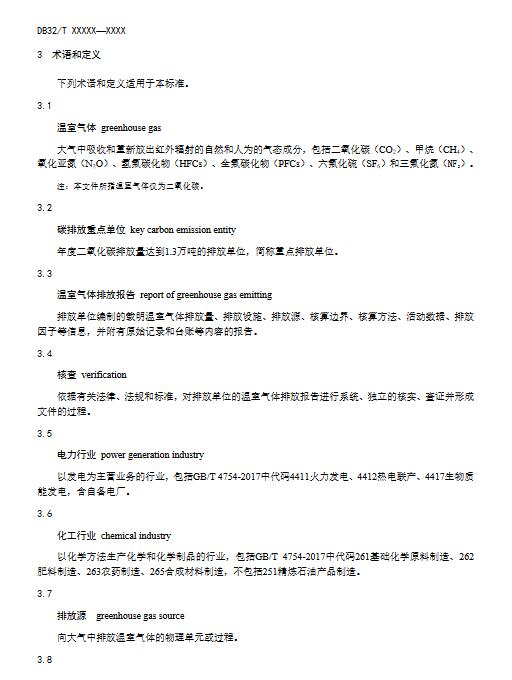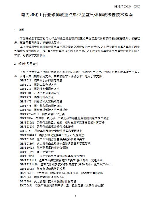 江蘇:電力和化工行業(yè)碳排放重點(diǎn)單位溫室氣體排放核查技術(shù)指南(征求意見(jiàn)稿)