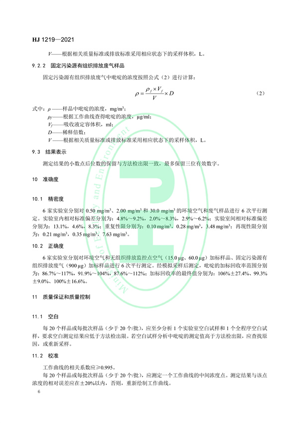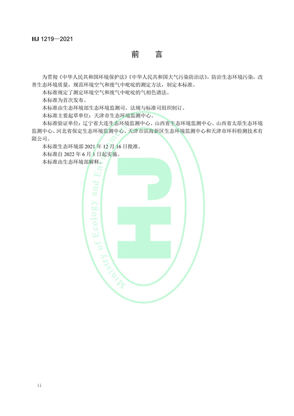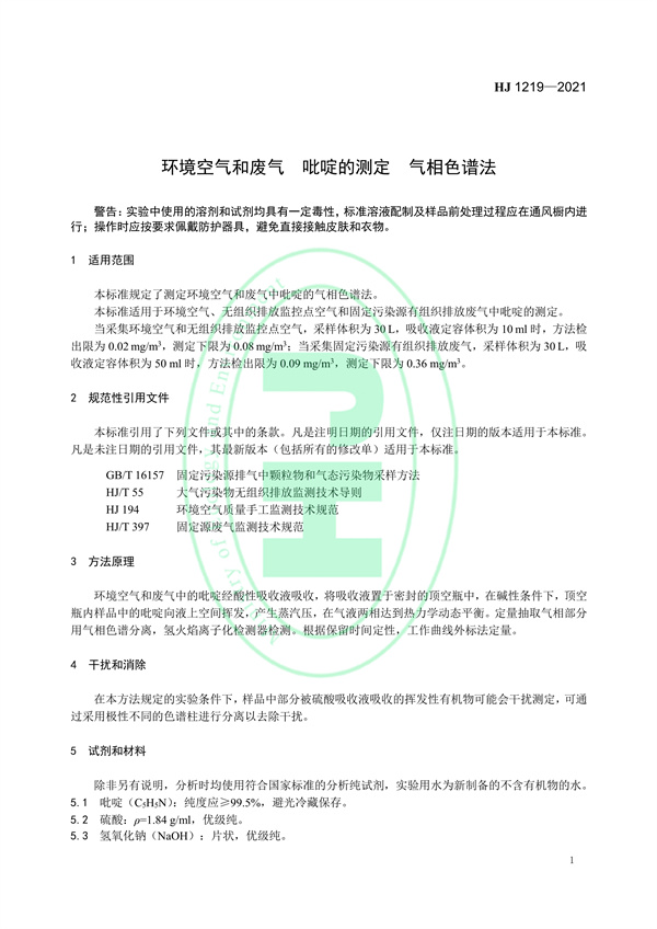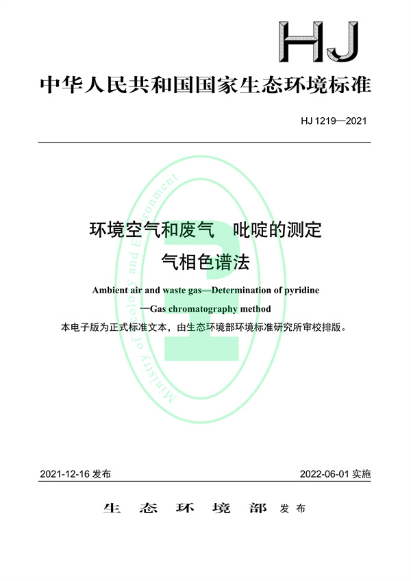 《環(huán)境空氣和廢氣吡啶的測(cè)氣相色譜法》(HJ 1219-2021)