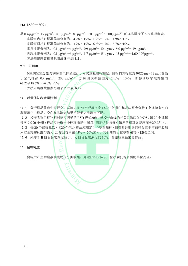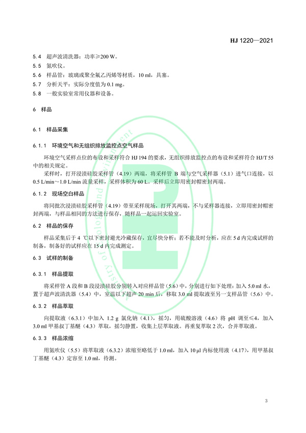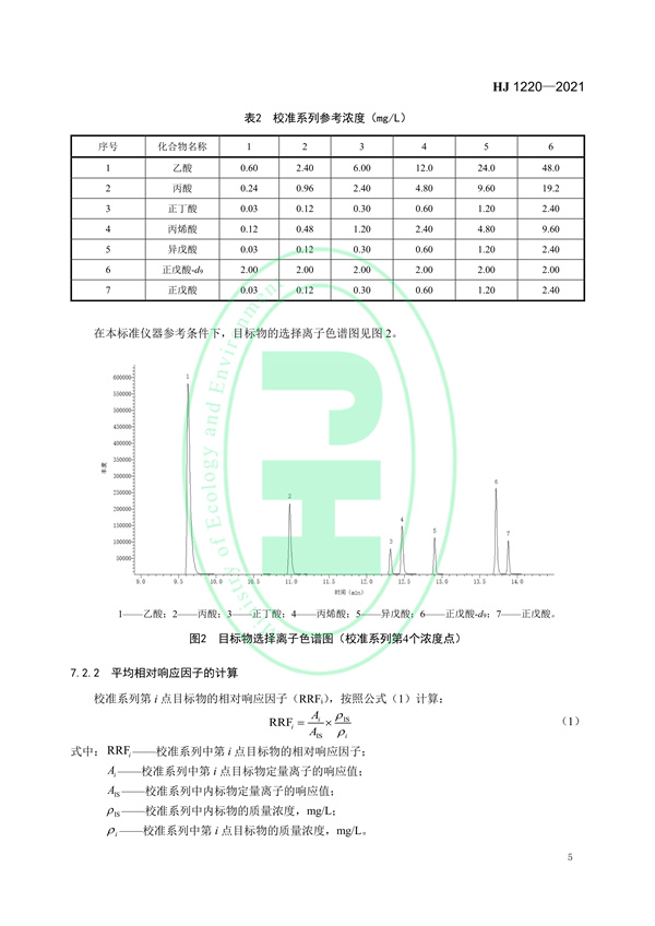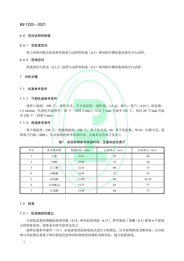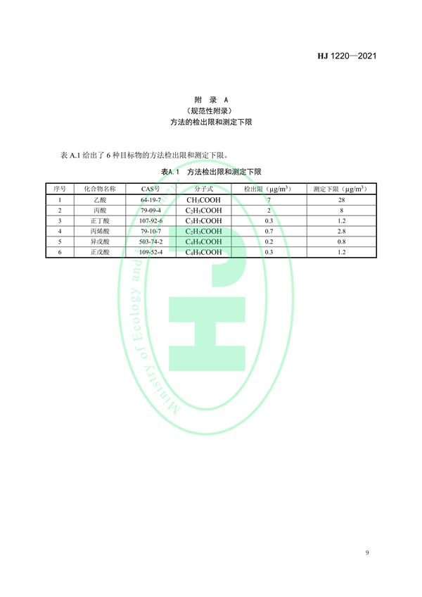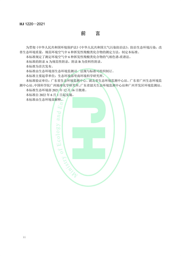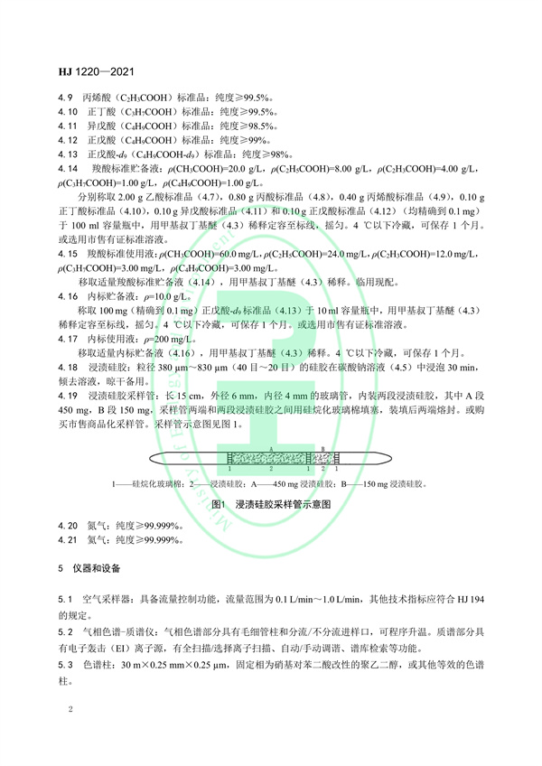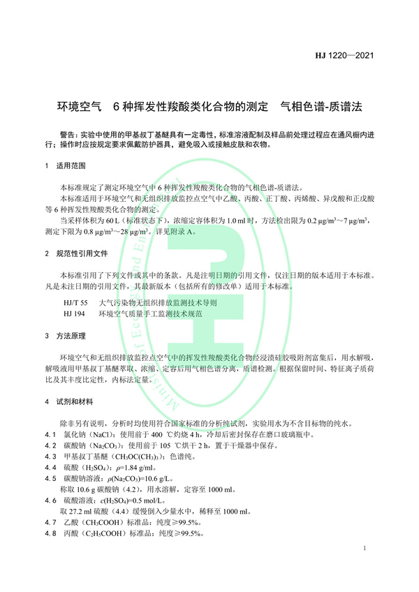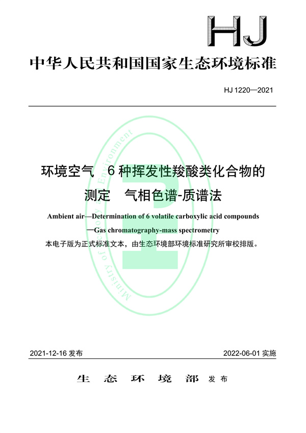 《環(huán)境空氣6種揮發(fā)性羧酸類化合物的測定氣相色譜-質(zhì)譜法》(HJ 1220-2021)