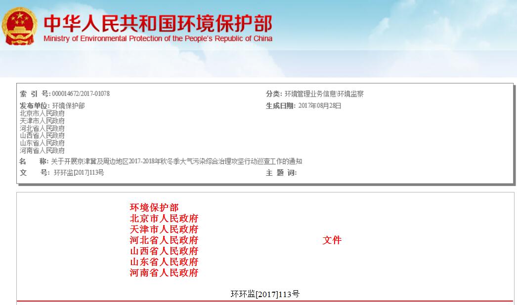 環(huán)保網(wǎng)獲悉,環(huán)保部聯(lián)合六省市聯(lián)合印發(fā)《京津冀及周邊地區(qū)2017-2018年秋冬季大氣污染綜合治理攻堅行動巡查方案》。全文如下: