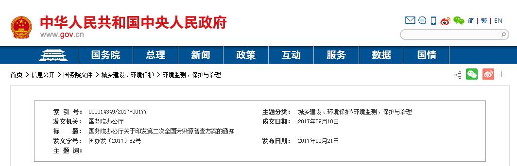 《第二次全國污染源普查方案》已經國務院同意,現(xiàn)印發(fā)給你們,請認真組織實施。