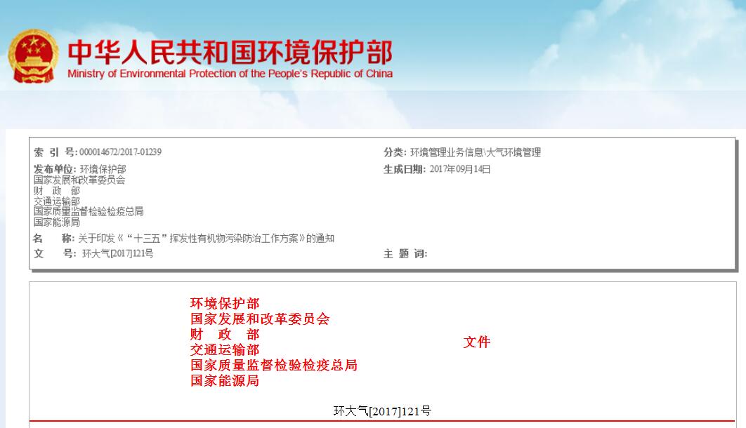 關(guān)于印發(fā)《“十三五”揮發(fā)性有機物污染防治工作方案》的通知