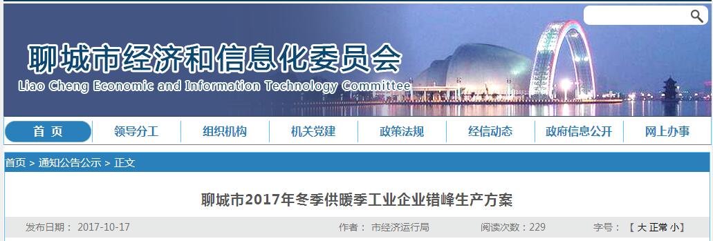 聊城市2017-2018年度采暖季工業(yè)企業(yè)錯峰生產實施方案
