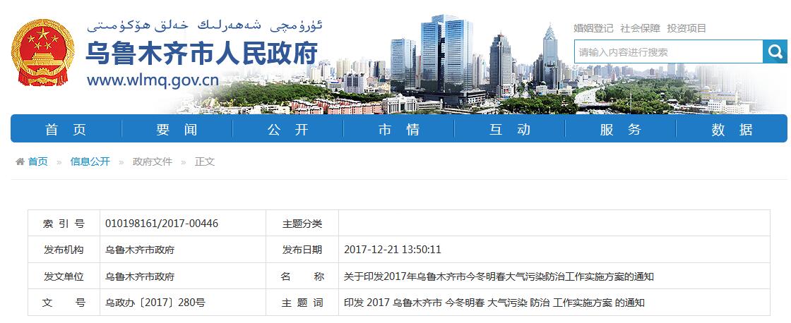 2017年烏魯木齊市今冬明春大氣污染防治工作實(shí)施方案