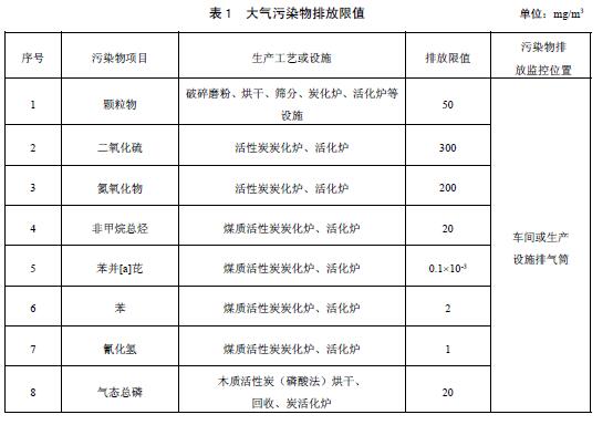 活性炭工業(yè)污染物排放標(biāo)準(zhǔn)