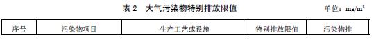 4.1.3根據(jù)環(huán)境保護(hù)工作的要求,在國(guó)土開發(fā)密度已經(jīng)較高、環(huán)境承載力開始減弱,或大氣環(huán)境容量較小、生態(tài)環(huán)境脆弱,容易發(fā)生嚴(yán)重大氣環(huán)境污染問題而需要采取特別保護(hù)措施的地區(qū),應(yīng)嚴(yán)格控制企業(yè)的污染物排放行為,在上述地區(qū)的企業(yè)執(zhí)行表2規(guī)定的大氣污染物特別排放限值。
