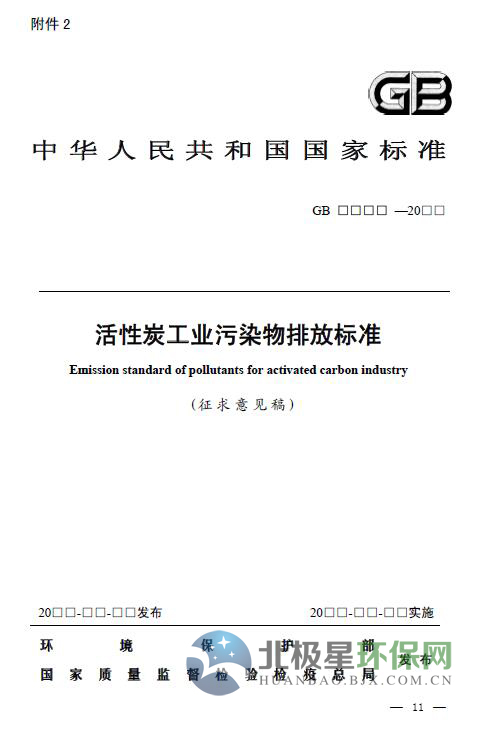 活性炭工業(yè)污染物排放標(biāo)準(zhǔn)(征求意見稿)
