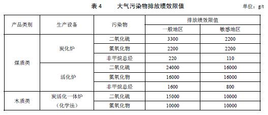 生產(chǎn)單位活性炭產(chǎn)品所允許的污染物排放量,以g/t或kg/t表示。