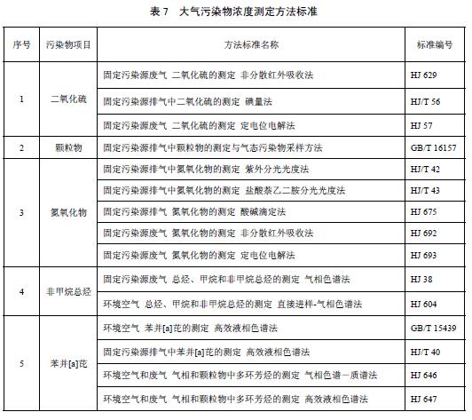 6.2.3企業(yè)排放大氣污染物濃度的測(cè)定采用表7所列的方法標(biāo)準(zhǔn)。