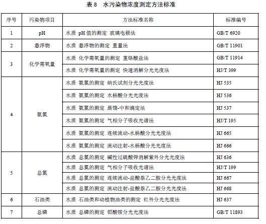 6.3.2對(duì)企業(yè)排放水污染物濃度的測(cè)定采用表8所列的方法標(biāo)準(zhǔn)。