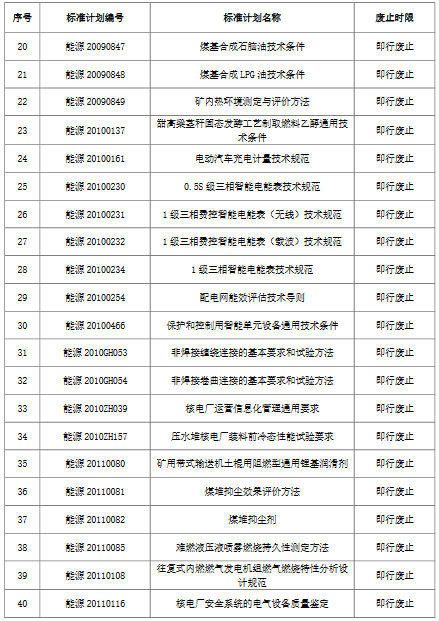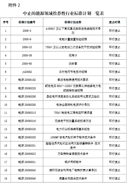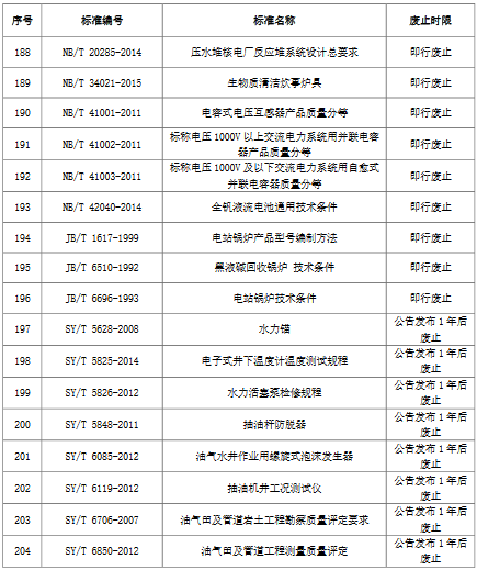 國家能源局廢止204項能源領(lǐng)域推薦性行業(yè)標(biāo)準(zhǔn)、中止99項標(biāo)準(zhǔn)計劃