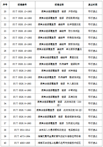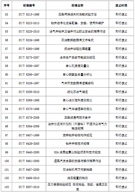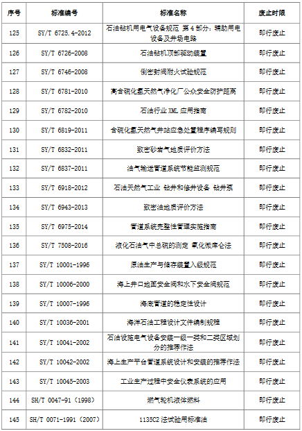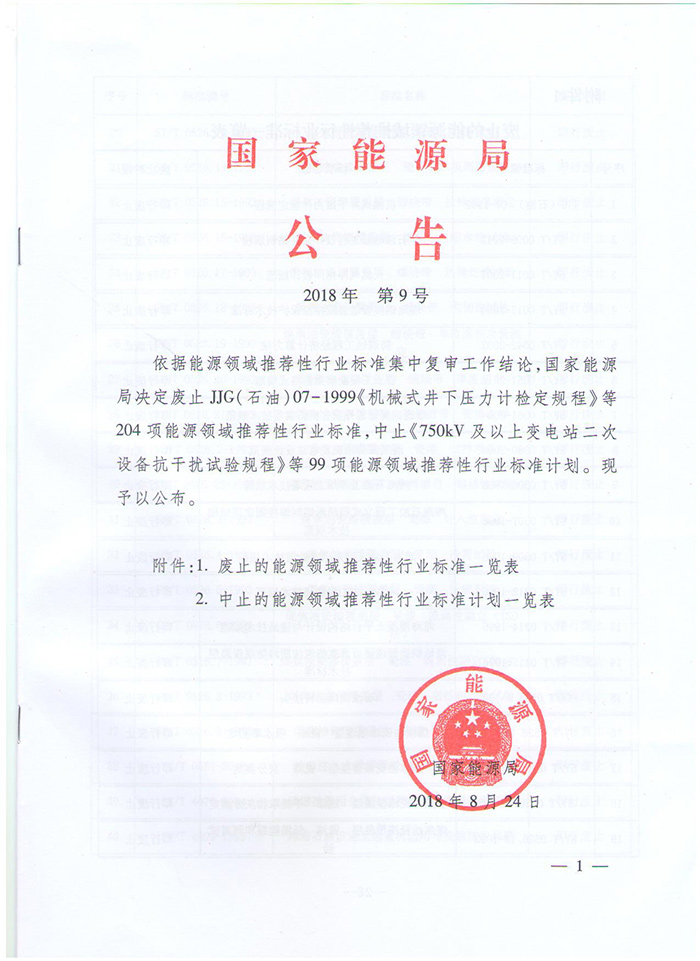 國家能源局日前發(fā)布了2018年第9號文件,宣布廢止一批能源領(lǐng)域推薦性行業(yè)標(biāo)準(zhǔn)和中止一批能源領(lǐng)域推薦性行業(yè)標(biāo)準(zhǔn)計劃。其中涉及廢止《油氣輸送管道系統(tǒng)節(jié)能監(jiān)測規(guī)范》、《石蠟氯離子及硫酸根離子試驗法》、《電站鍋爐技術(shù)條件》等204項能源領(lǐng)域推薦性行業(yè)標(biāo)準(zhǔn),中止《電除塵器控制電源評價導(dǎo)則》、《煤堆抑塵劑》、《煤堆抑塵效果評價方法》、《煤粉工業(yè)鍋爐及系統(tǒng)》等99項能源領(lǐng)域推薦性行業(yè)標(biāo)準(zhǔn)計劃。